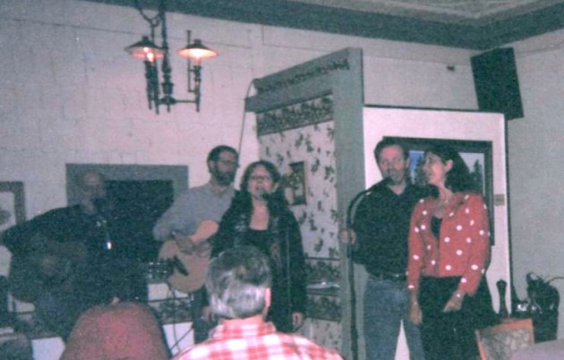 The wayback machine (AKA Bette’s desk drawer of doom) spat out this fabulous photo of the origins of PGO. That’s Michael on bass and Andy on guitar, plus Barb and Beev on vocals with Bette sitting in for a few tunes that evening. What a fun night! The photo brought back great memories!