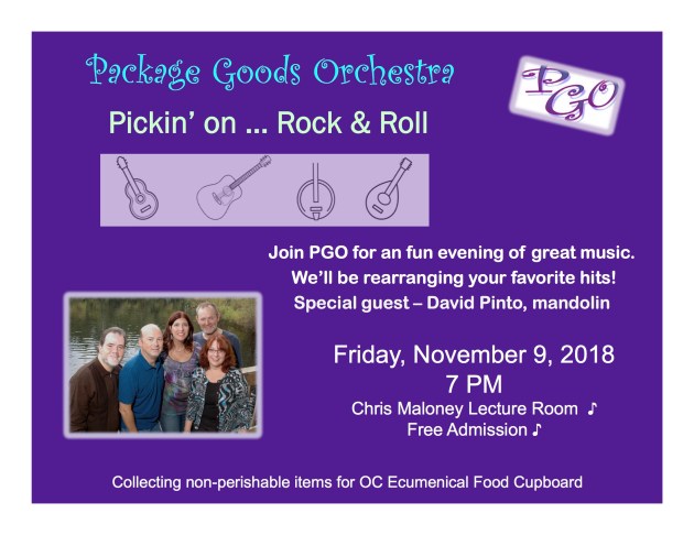 Join us on October 20th at 7 PM. The address is 108 Stokes Road (Memorial Hall), Medford Lakes, New Jersey 08055. There is a $10 admission that covers a whole evening of music. After PGO’s set, our friends from the Lonesome Turnpike Ramblers take the stage. We’ll be so glad to see you!