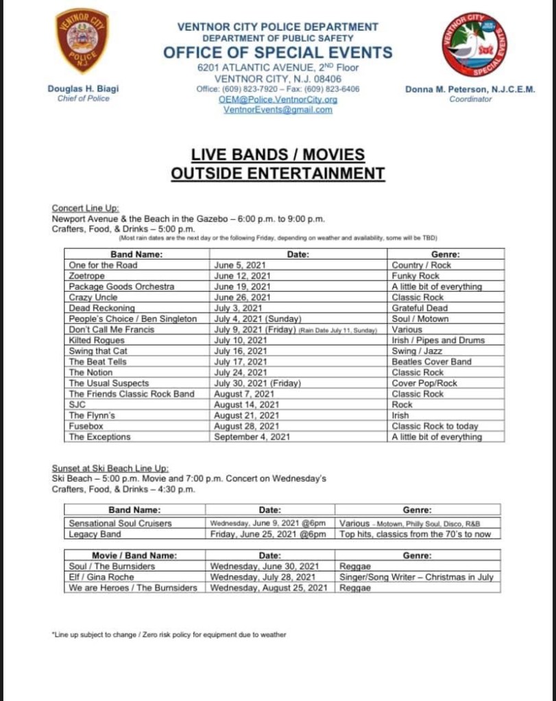 Join us from 6-9 p.m. on Saturday June 19th. (rain dates 6/20 6/25) We are thrilled to be included in the line up for Ventnor’s Beach Concert Series this year. There will be food trucks and crafters beginning at 5 p.m. Bring your beach chair and relax on the sand. We can’t wait to make music again!
